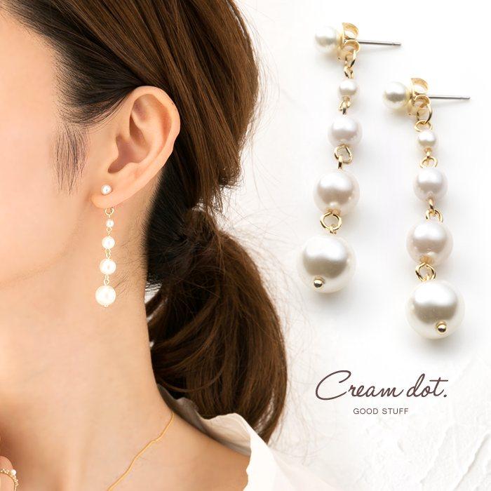 ピアス ボールチェーン 5連 パール アレンジ ニッケルフリー ポスト 金属アレルギー 大ぶり ピアス 揺れる ゆうパケット送料無料 Cream Dot 通販 Paypayモール